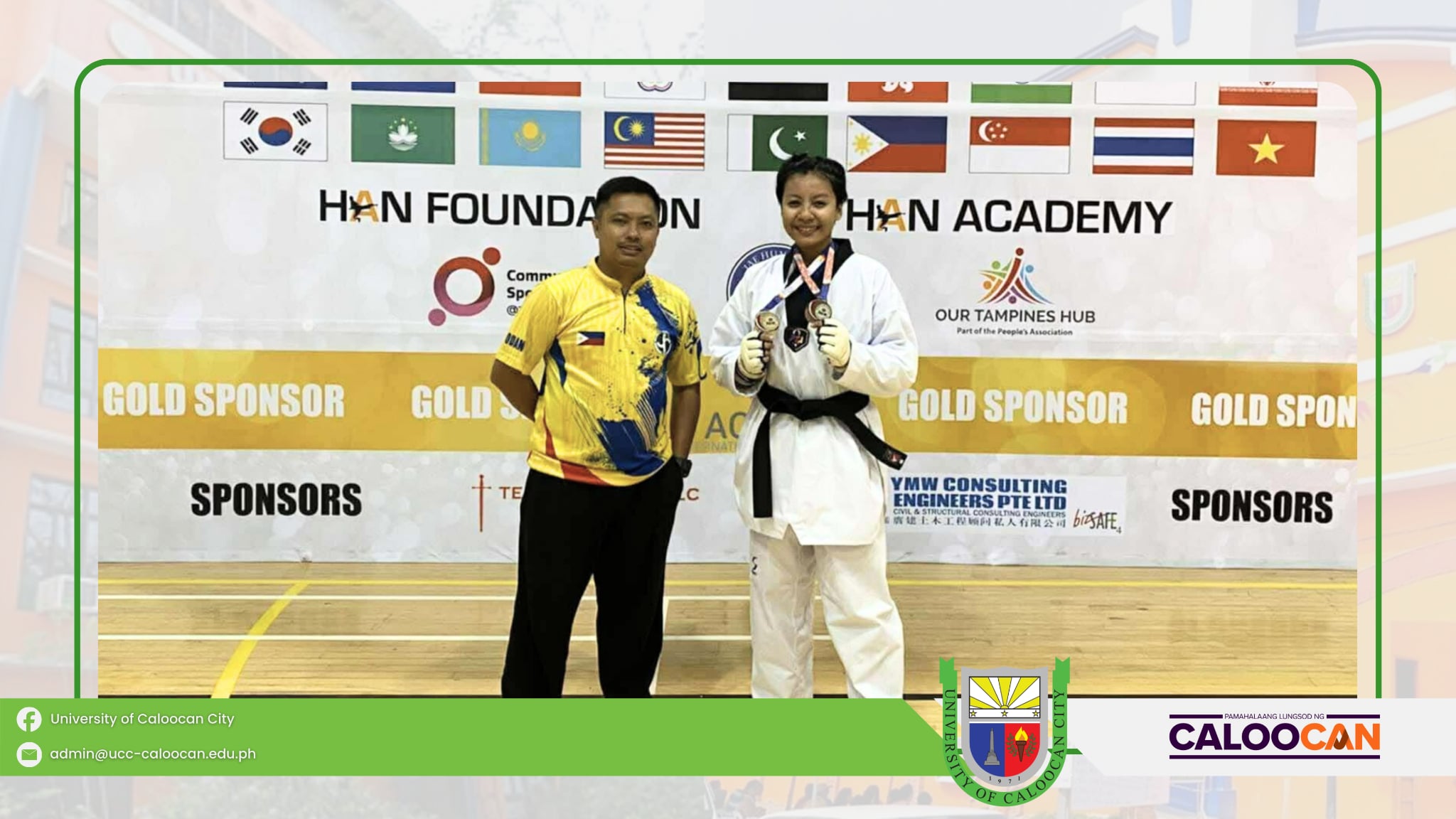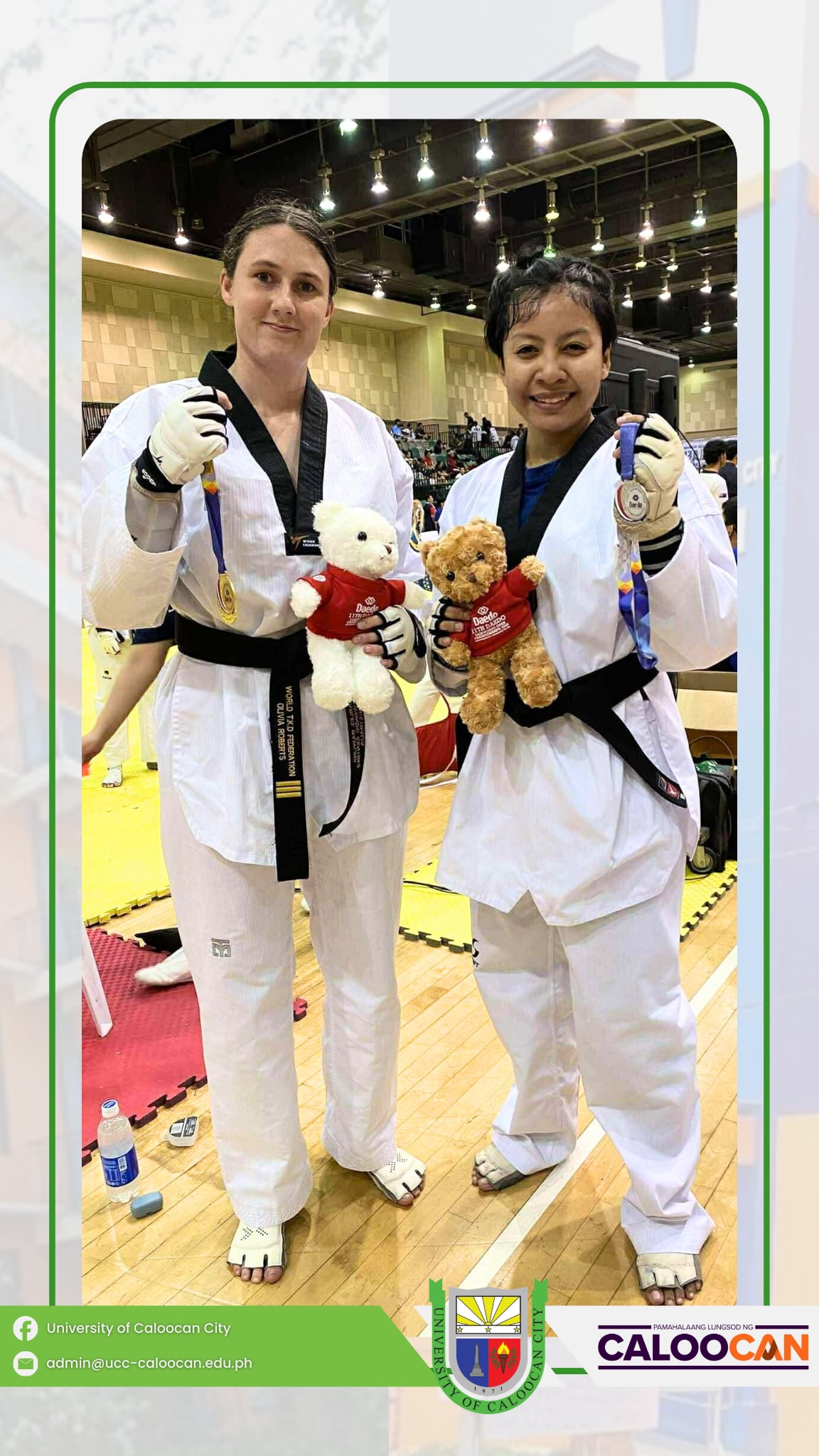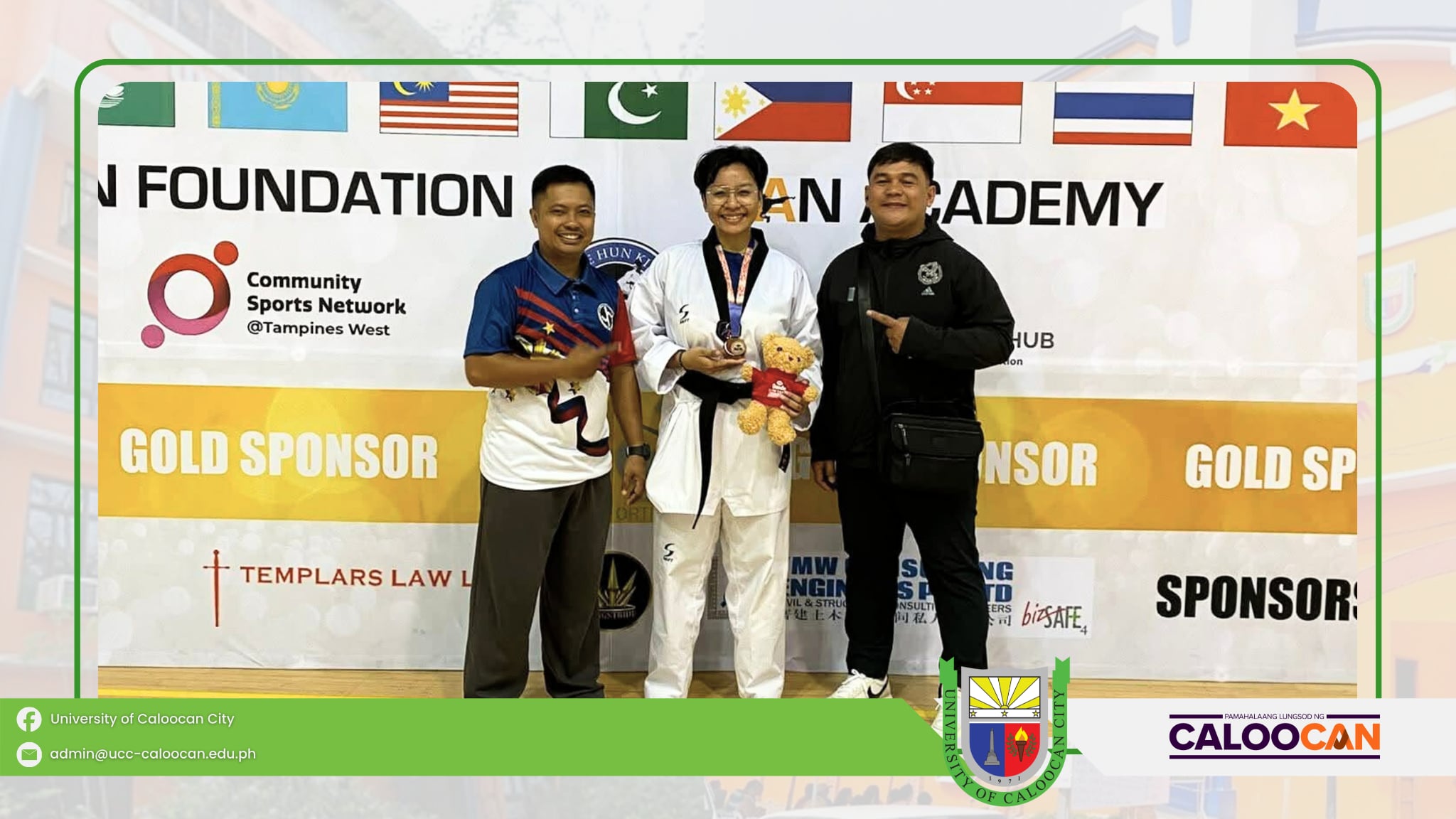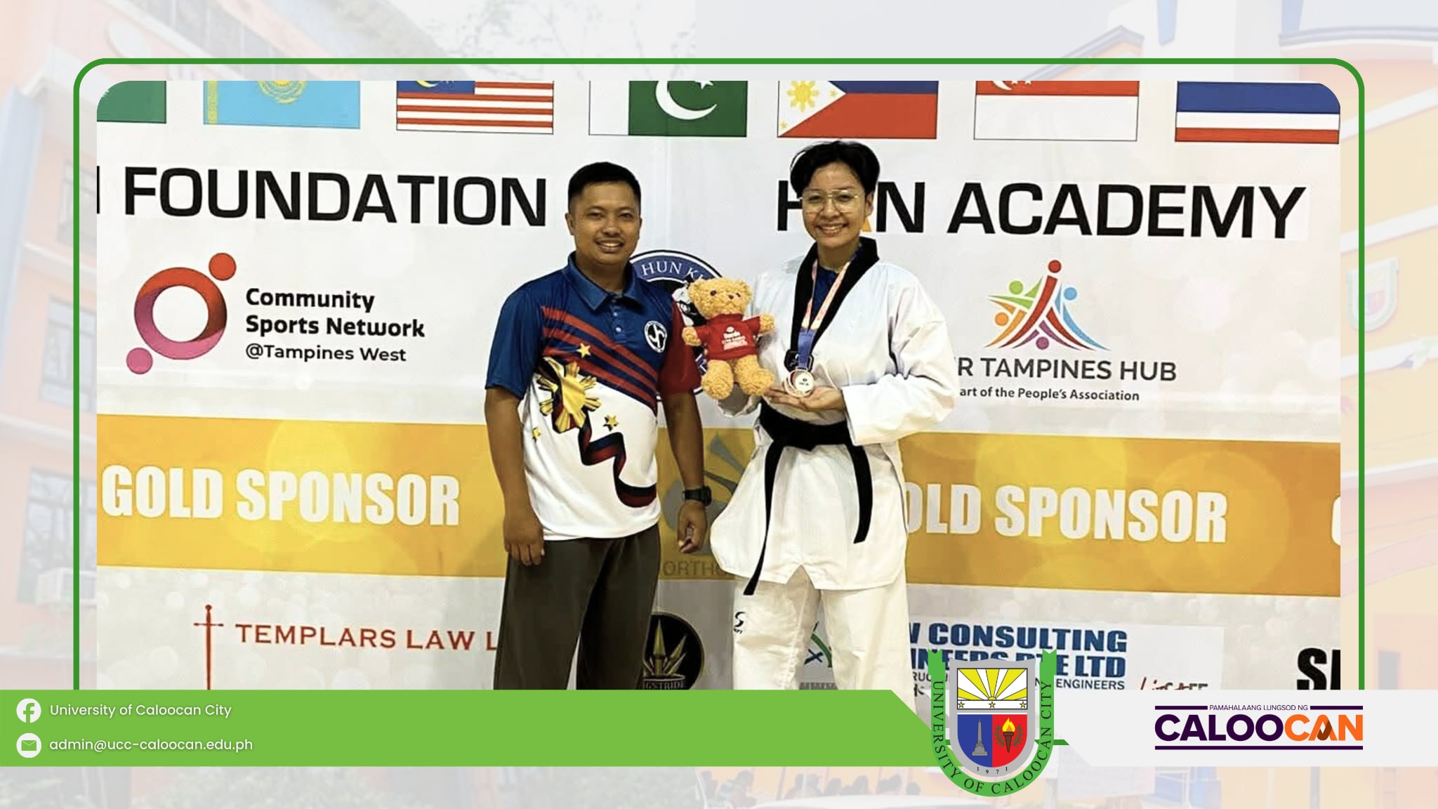 Proudly representing the UCC pride on the international stage, Carlstle Rose D. Carulla of CCJE–BSCrim 3B, UCC South Campus, brings home a Silver Medal in Under 30 Female Dan Kyorugi and a Bronze Medal in Virtual Taekwondo at the 11th DAEDO Taekwondo Open Championships in Tampines, Singapore.